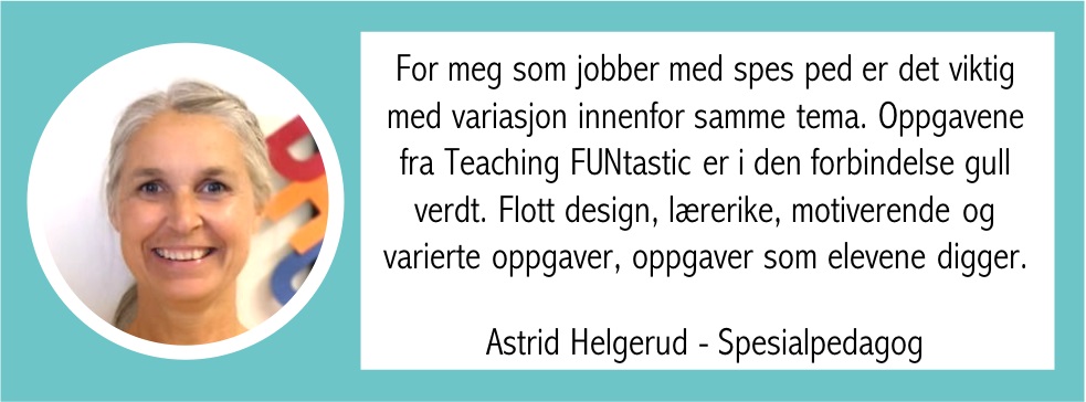 Etter 13 år som lærer er jeg stolt og overlykkelig over å ha utviklet Teaching FUNtastic til et stort ressursnettsted, som daglig tas i bruk av lærere over hele landet. Å få dele min kreativitet og engasjement for undervisning med deg, er “driven” bak min utvikling av lærerike og motiverende læringsressurser.