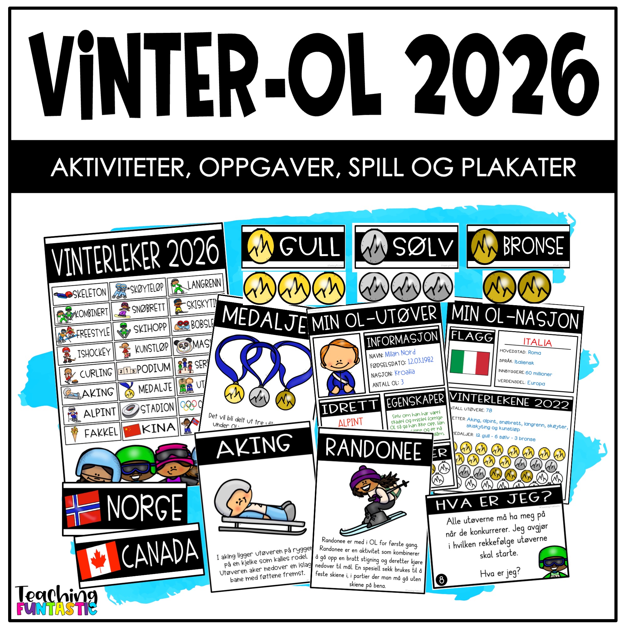 Aktivitetspakken er bygget opp rundt de olympiske vinterleker i Italia 2026. Her får man flere ulike typer oppgaver til Vinter-OL, som kan arbeides med enkeltvis eller som del av et større undervisningsopplegg rundt OL.