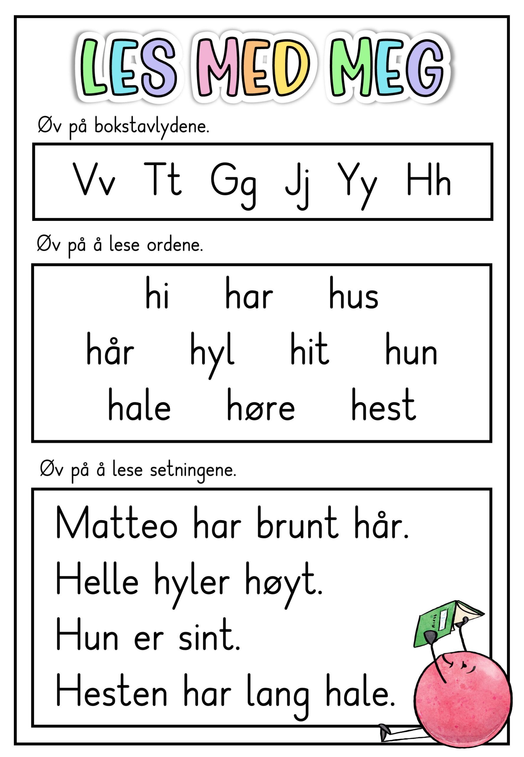 Endelig leselekser som gir mening – både for deg som lærer og for elevene! Mange elever strever fordi leseleksene inneholder bokstaver de ikke har lært ennå. Med disse lesearkene slipper du det problemet. Elevene begynner å lese allerede etter de seks første bokstavene, og får oppleve gleden av å mestre. Hvert nytt leseark legger til én bokstavlyd av gangen, slik at elevene får en trygg og logisk vei inn i lesingen.