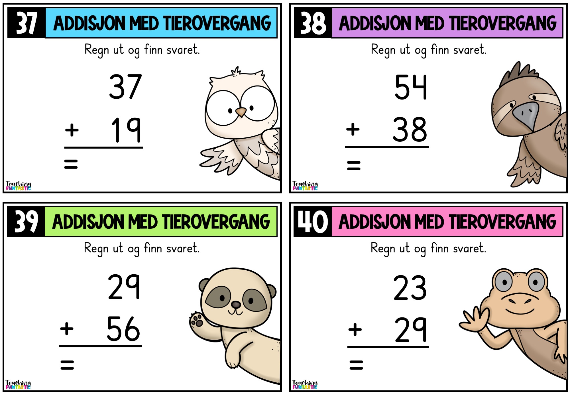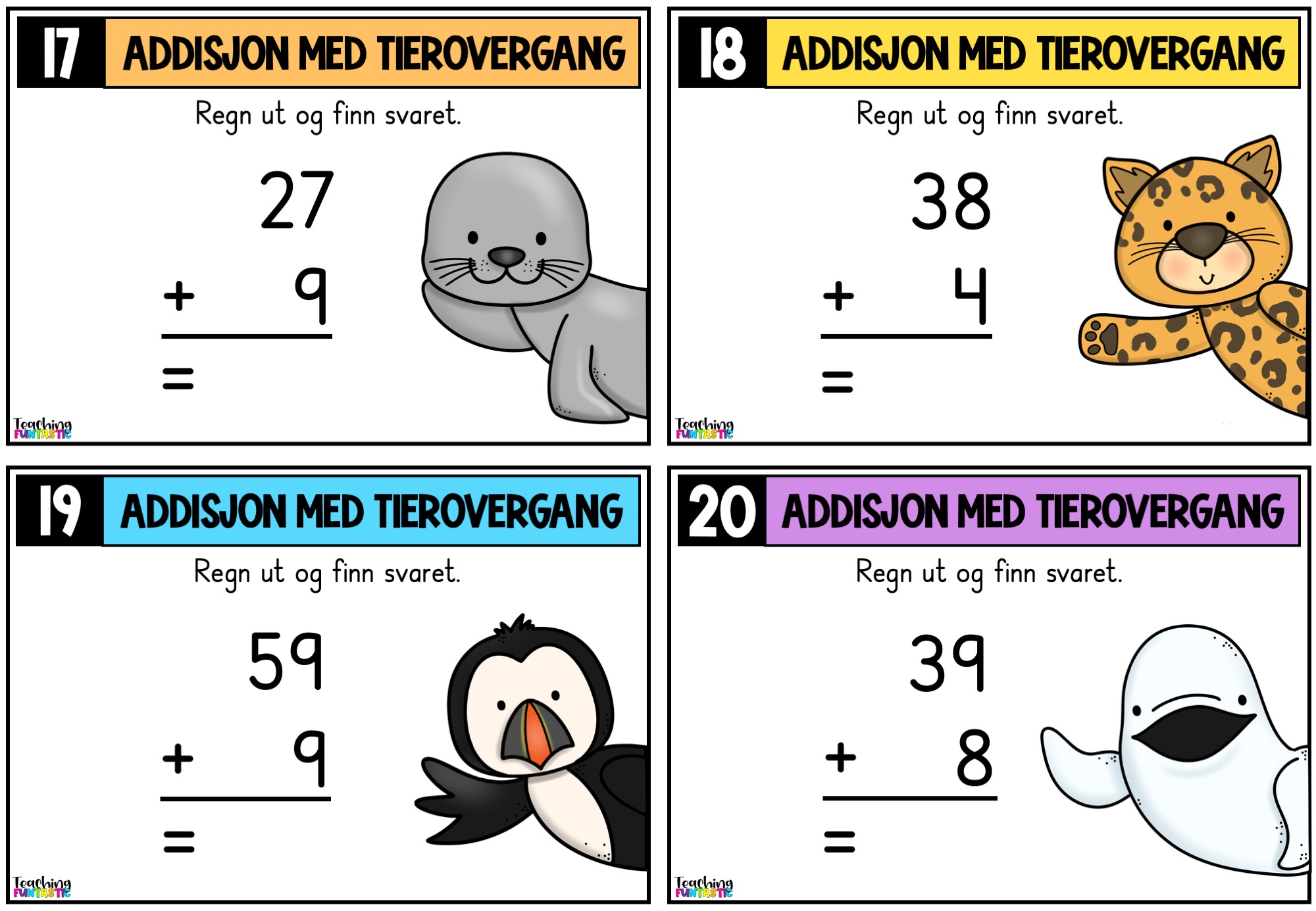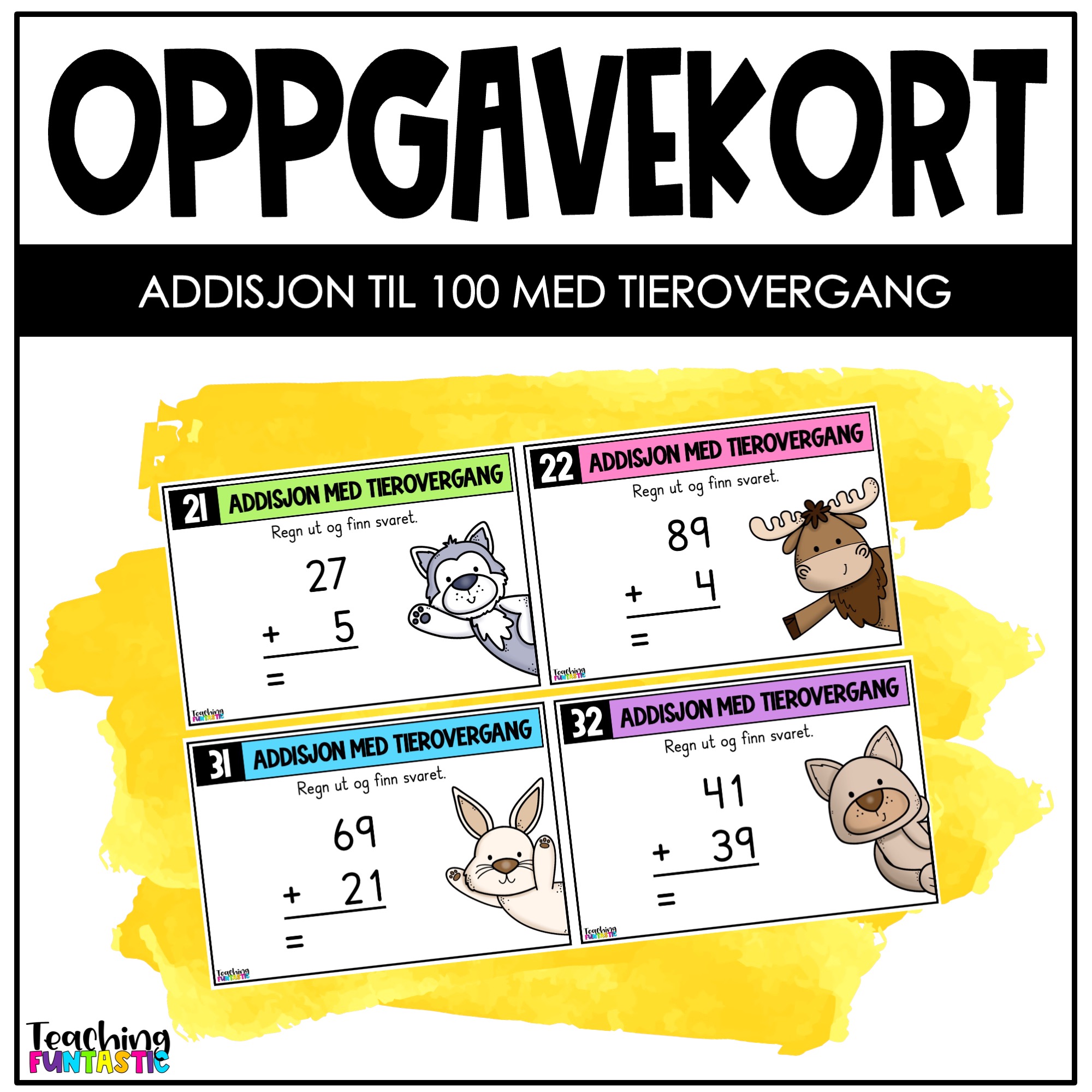 Oppgavekort i matematikk – Addisjon med tallene til 100 med tierovergang