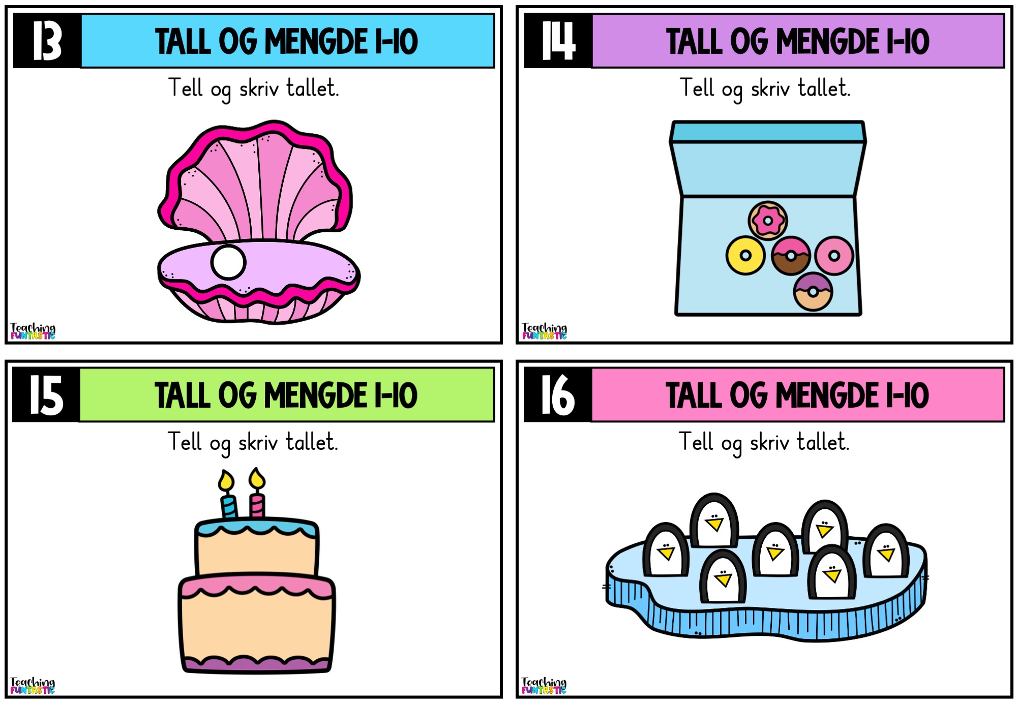 Del av en komplett serie med oppgavekort i matematikk for 1. trinn