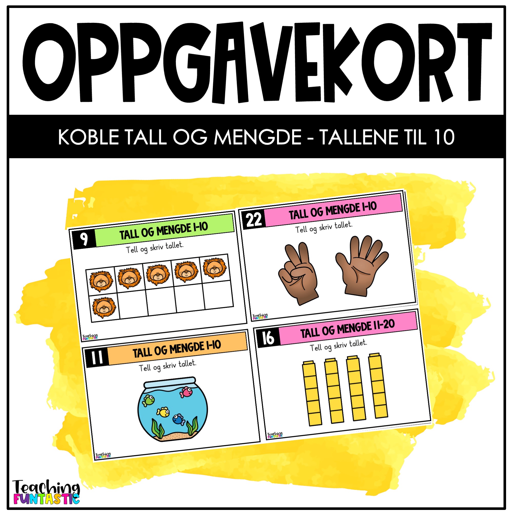 Dette settet med oppgavekort i matematikk gir elevene trening i å koble tall og mengder opp til 10. Det følger med fasit og svarark, slik at oppgavene raskt kan tas i bruk og elevene selv kan sjekke om de har kommet frem til riktige svar. Målet er at elevene skal kunne mestre læringsmålene i matematikk for 1. trinn ved bruk av oppgavekort som en av flere arbeidsmetoder.