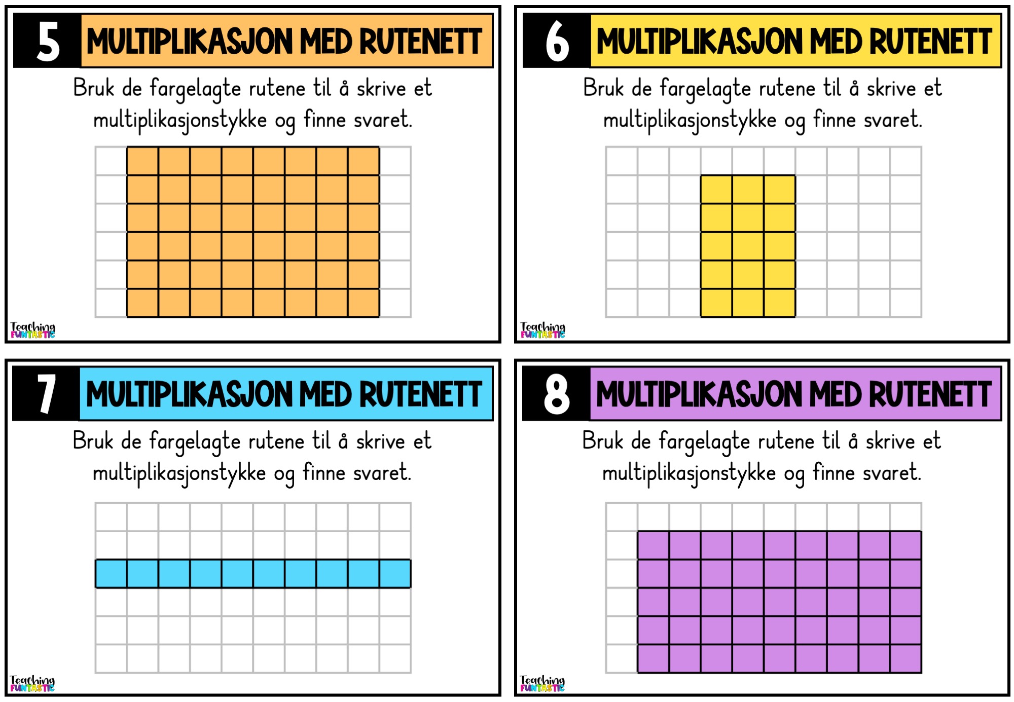 Oppgavekort i matematikk – Representere multiplikasjon med rutenett