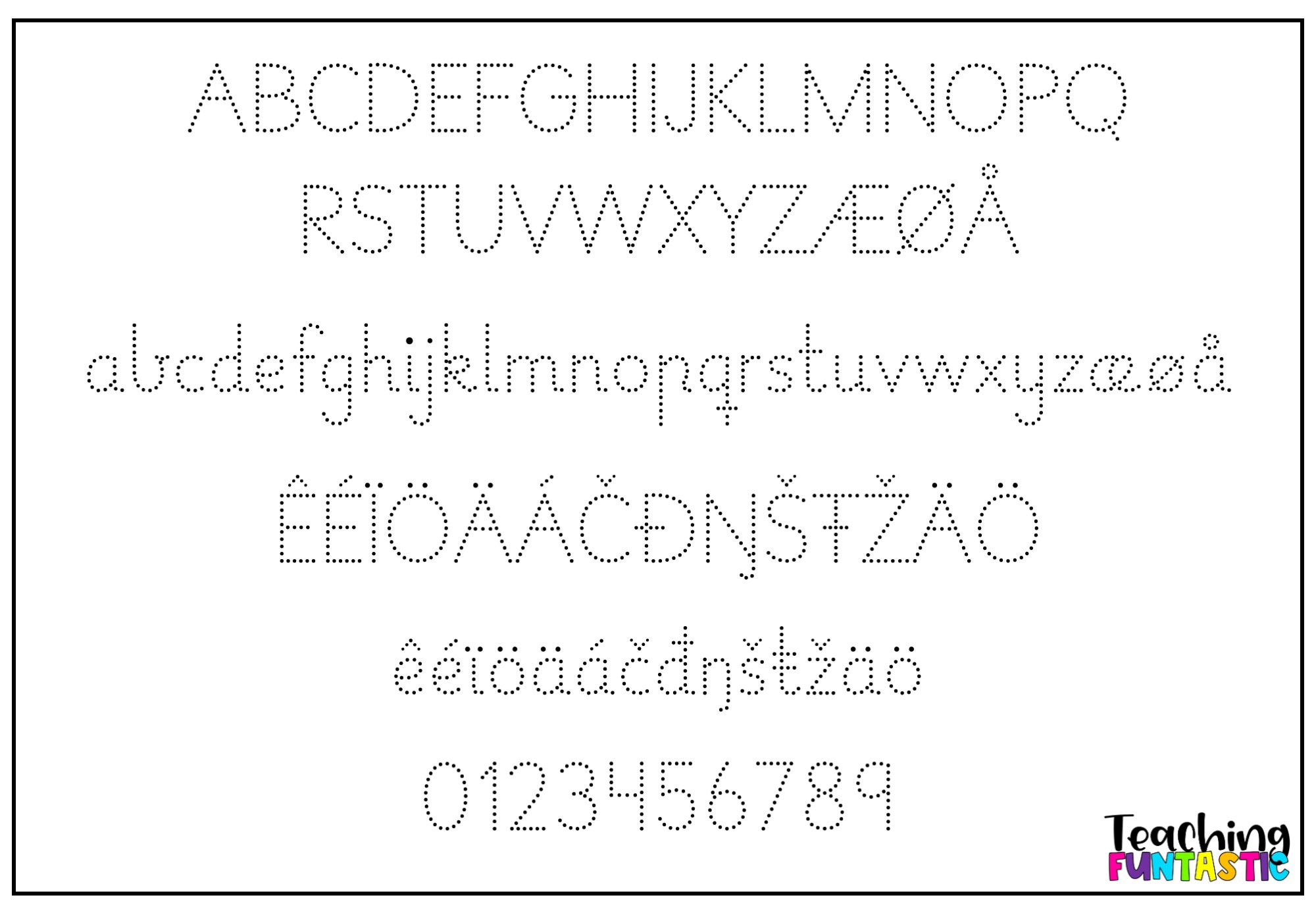 Her finner du alt fra trykkskrift, stiplet håndskrift, skriveretningsfont, bokstavbokser og finmotorikk-border – til en eksklusiv matematikkfont som gjør oppgavelaging superenkel.