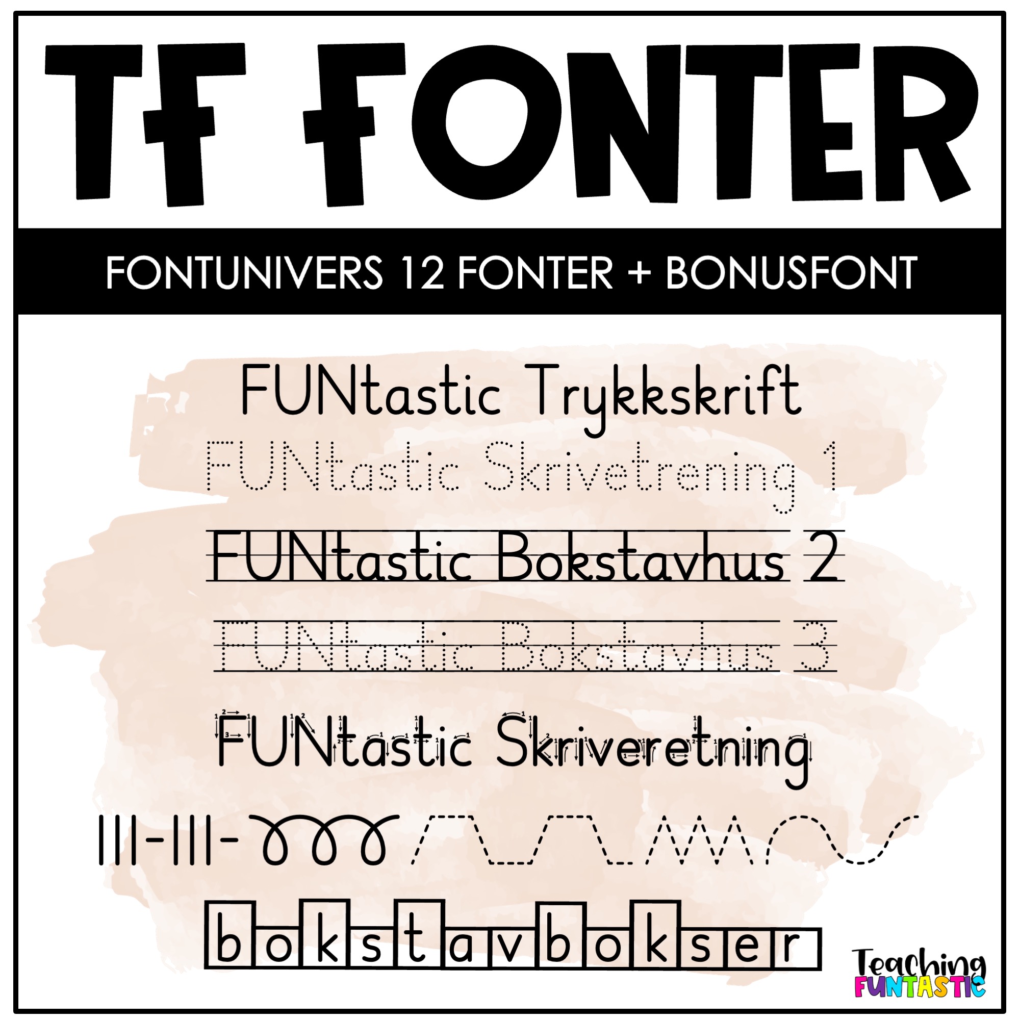 FUNtastic Font-universet er den ultimate samlingen av undervisningsvennlige fonter – laget spesielt for lærere i grunnskolen. Pakken består av 12 fonter + en bonusfont, og gir deg alt du trenger for å lage profesjonelt, helhetlig og visuelt tiltalende undervisningsmateriell.