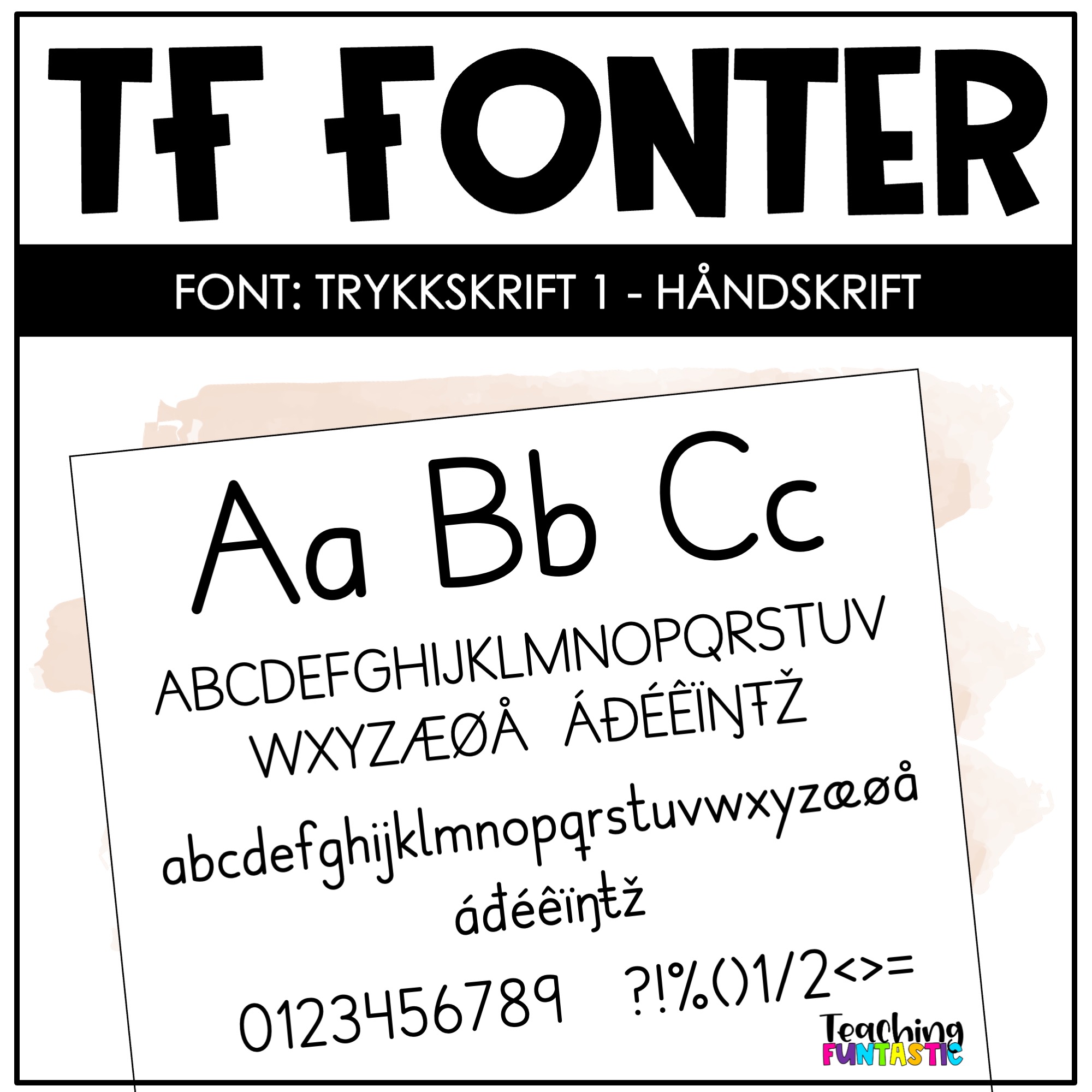 FUNtastic Trykkskrift er en enkel og tydelig font håndskrift utviklet spesielt for lærere og elever i begynneropplæringen. Den etterligner den trykkskriften elevene lærer å skrive selv, og passer perfekt i alt fra arbeidsark og lesehefter til plakater og oppgaver. Denne fonten for skolebruk gjør det lettere for elevene å kjenne igjen bokstavformene de jobber med hver dag – og bidrar til trygghet og mestring i lese- og skriveopplæringen.